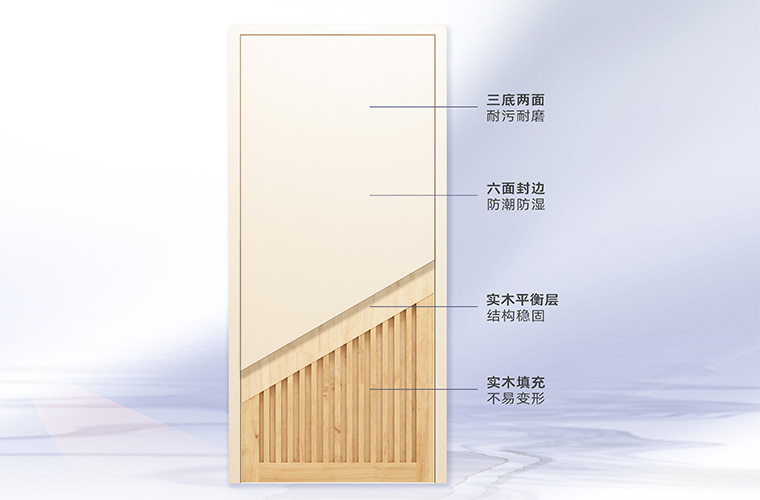 三底兩面油漆工藝,使用優(yōu)質(zhì)水性漆,性能優(yōu)于國家標(biāo)準(zhǔn),木門漆面飽滿,健康環(huán)保。
