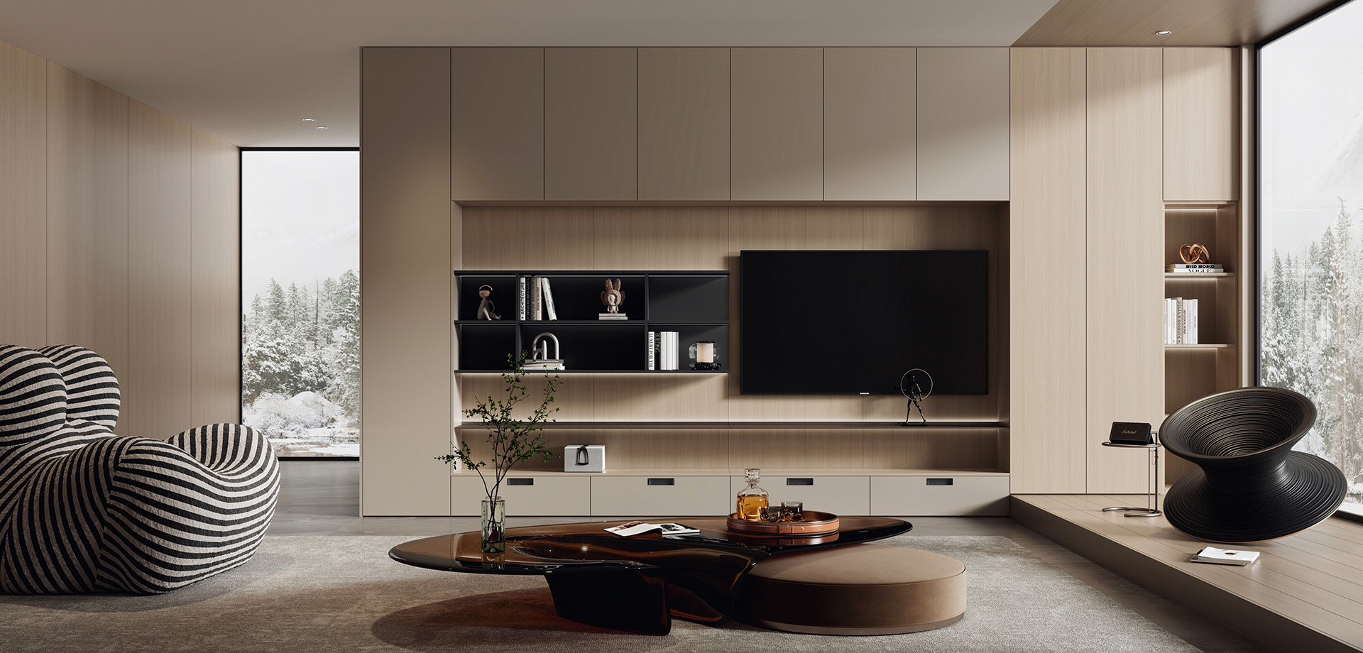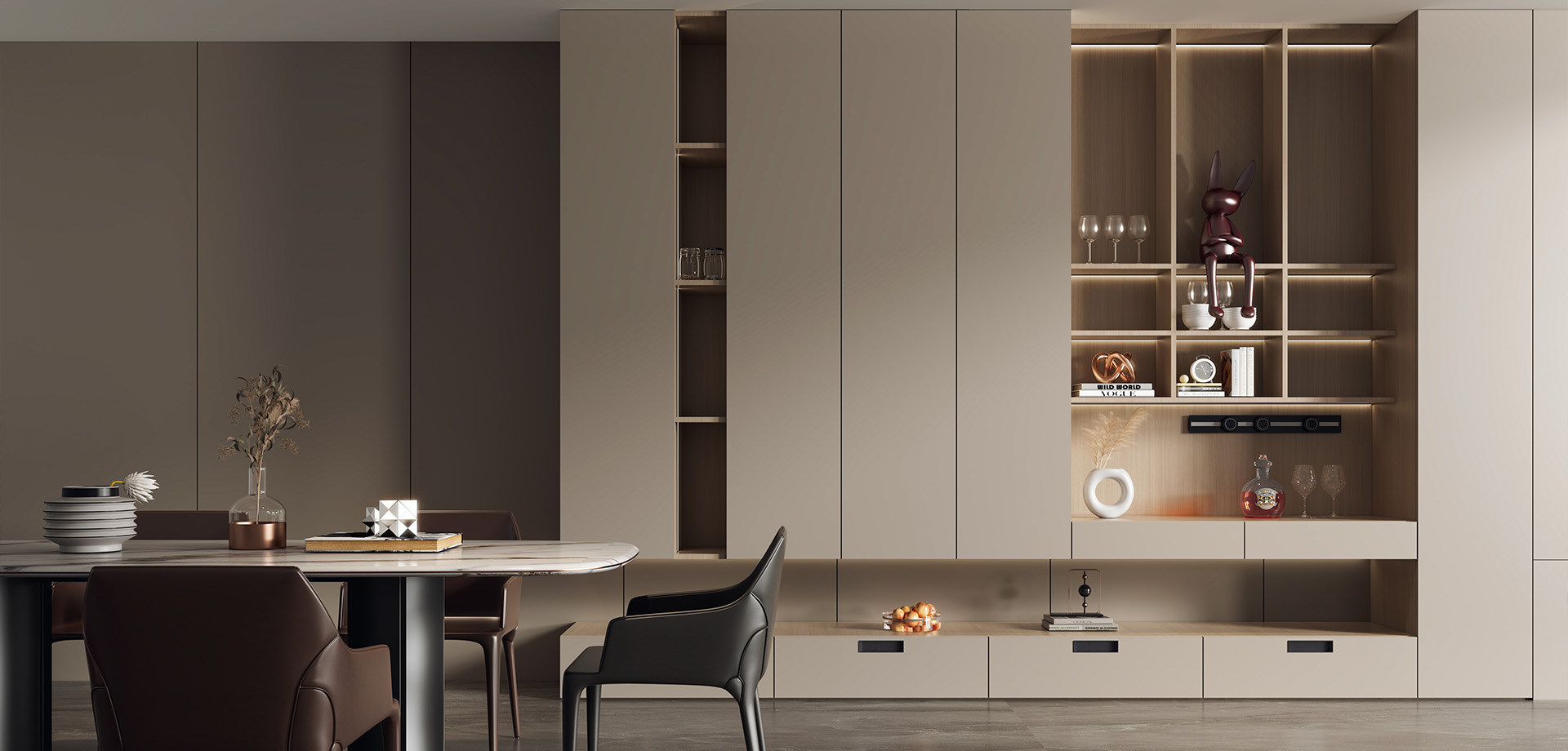 融合PET材質(zhì)耐褪色、防指紋、耐磨性強(qiáng)的優(yōu)越性能,以簡約松弛為設(shè)計理念,通過原木色與暖白色為主調(diào),采用一門到頂?shù)脑O(shè)計既實用又美觀,與現(xiàn)代家居審美需求完美契合。金屬質(zhì)感的把手設(shè)計獨(dú)特,不僅實用且彰顯出時尚魅力,為家居空間增添了一抹獨(dú)特的亮點(diǎn)。旨在打造既溫馨又愜意的居家生活。